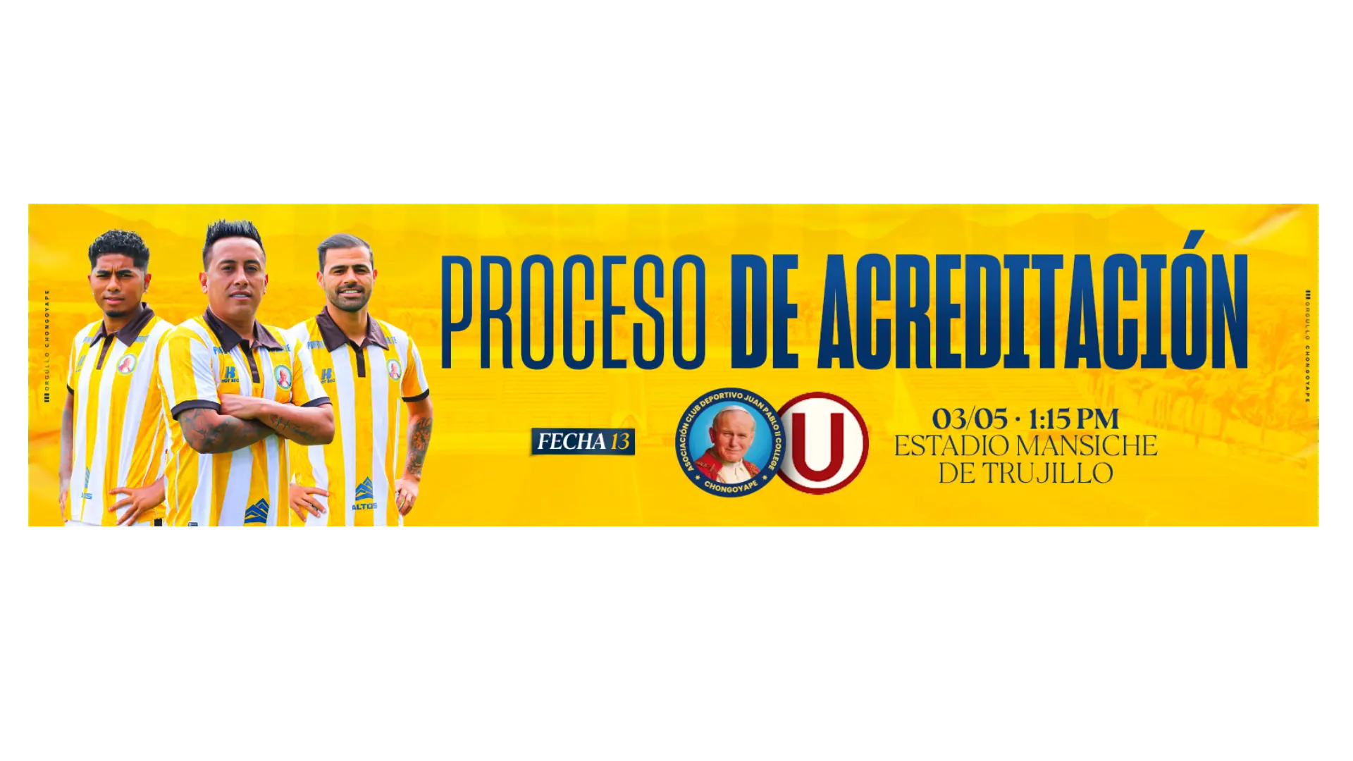 El Club Juan Pablo II informa el inicio del proceso de acreditación de prensa para la cobertura del partido correspondiente a la Fecha 11 de la Liga 1 Te Apuesto, entre Juan Pablo II vs Universitario de Deportes.